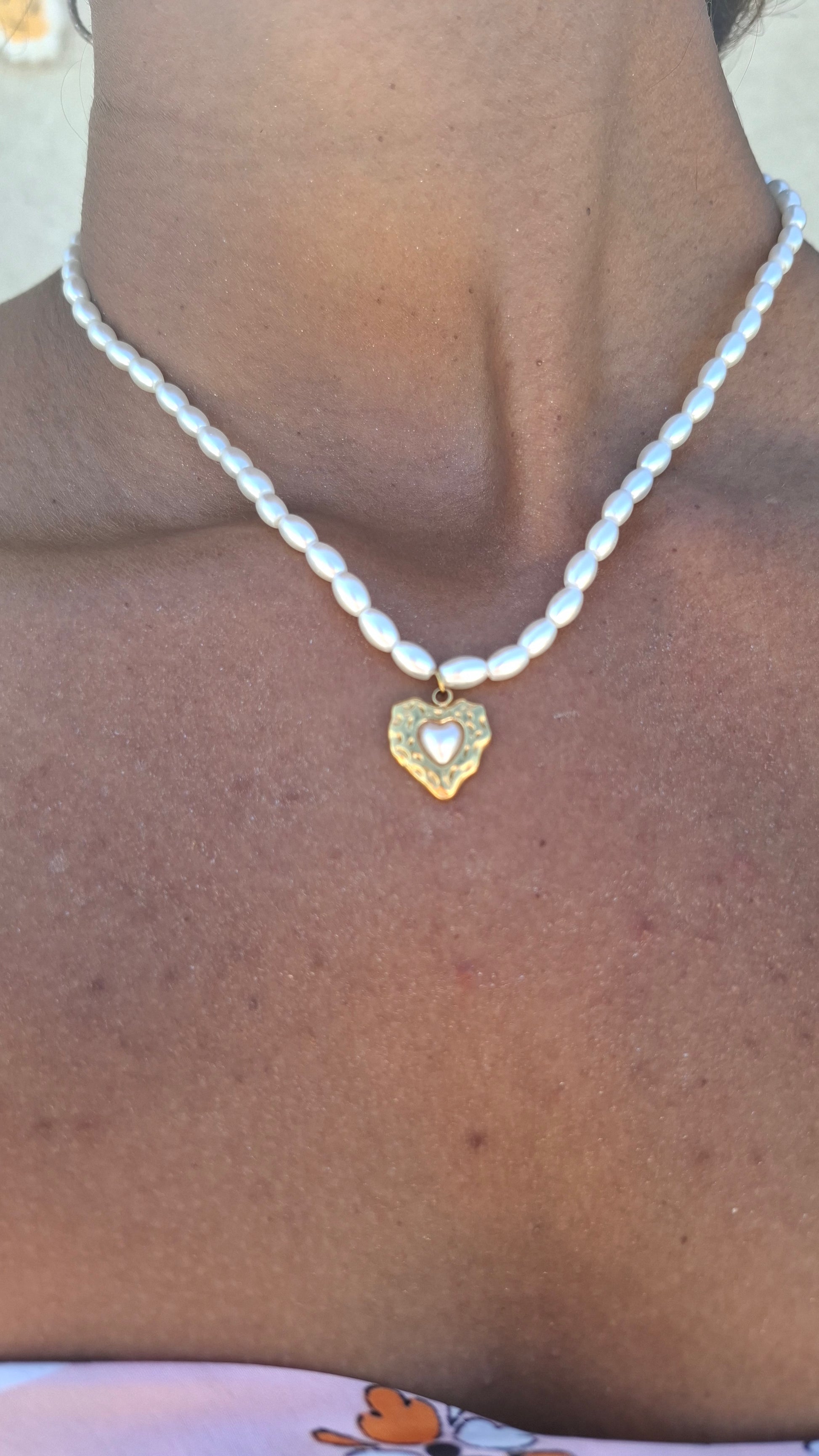 Orné de perles délicates et d'un pendentif cœur captivant, ce collier incarne la séduction intemporelle.